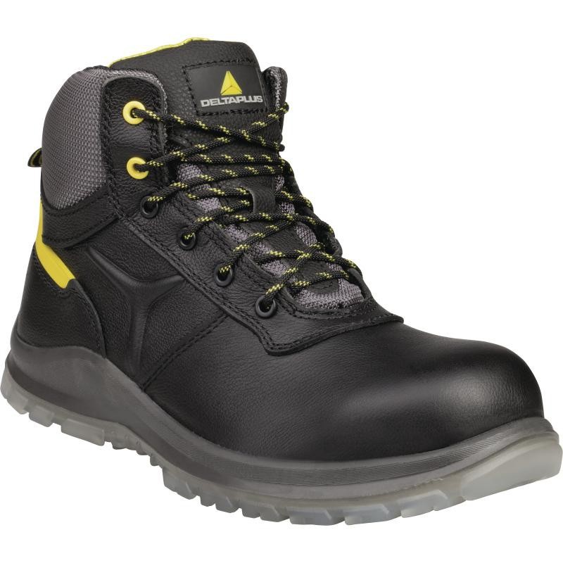 舒适型全皮安全鞋,全粒面牛皮鞋面,S3级别防水性能。内衬为涤纶3D透气网面,预成型可脱卸抗菌防霉鞋垫,注塑PU鞋底,TPU外底,内嵌代尔塔使用寿命检测Logo。全鞋使用代尔塔高科技Air Flow System技术,透气舒适。