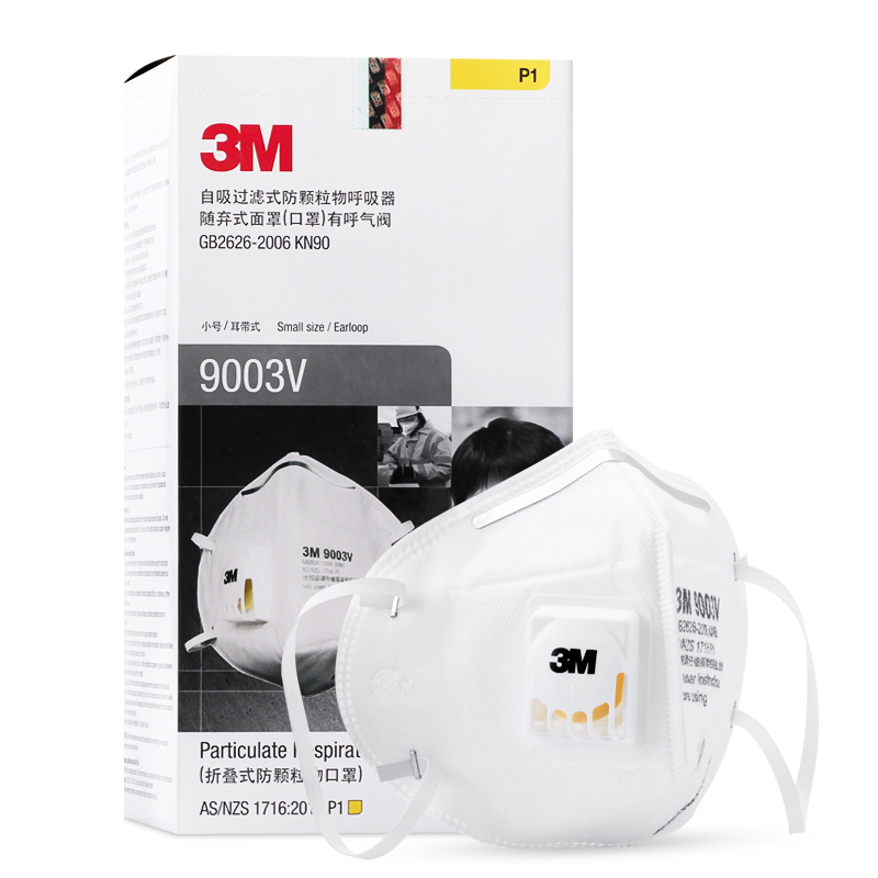 3M 9001V/9002V/9003V折叠式带阀口罩防雾霾防尘口罩通过澳大利亚/新西兰AS/NZS 17196-2003 P1及中国GB2626-2019 KN90认证;